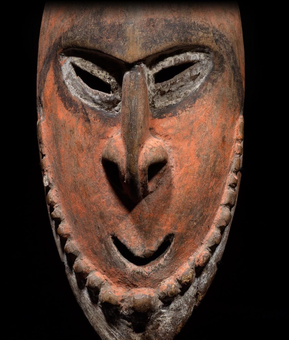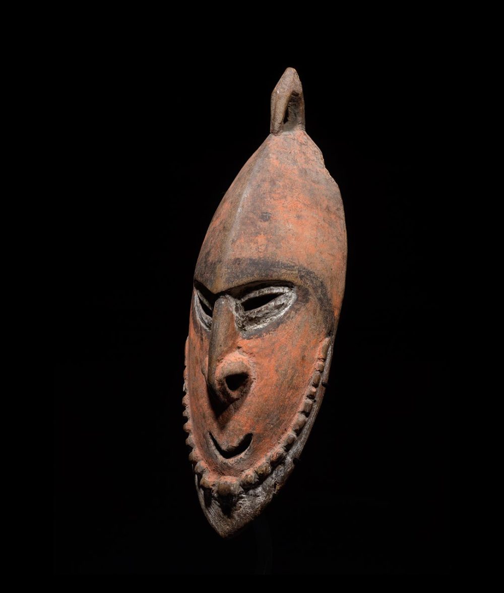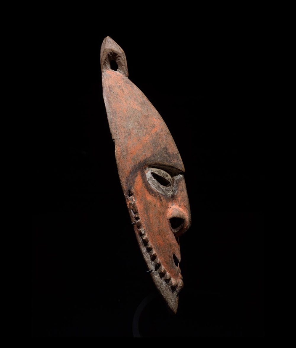 Masks of this type were used to represent important ancestors of the clan. They were presented to young initiates in important ceremonies in which the inductees were given the necessary knowledge needed to enter the adult world. The hornbill beak on the top of the mask was distinctive symbols related to ancestors, headhunting and warfare. This striking mask is still decorated with most of its original natural pigments. The mask is nicely patinated and shows evidence of many years of use and age.