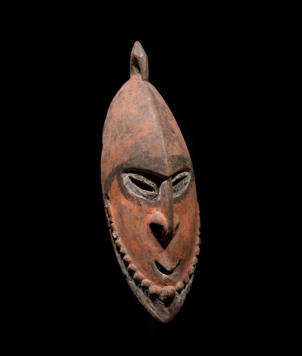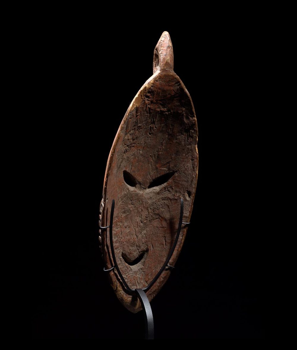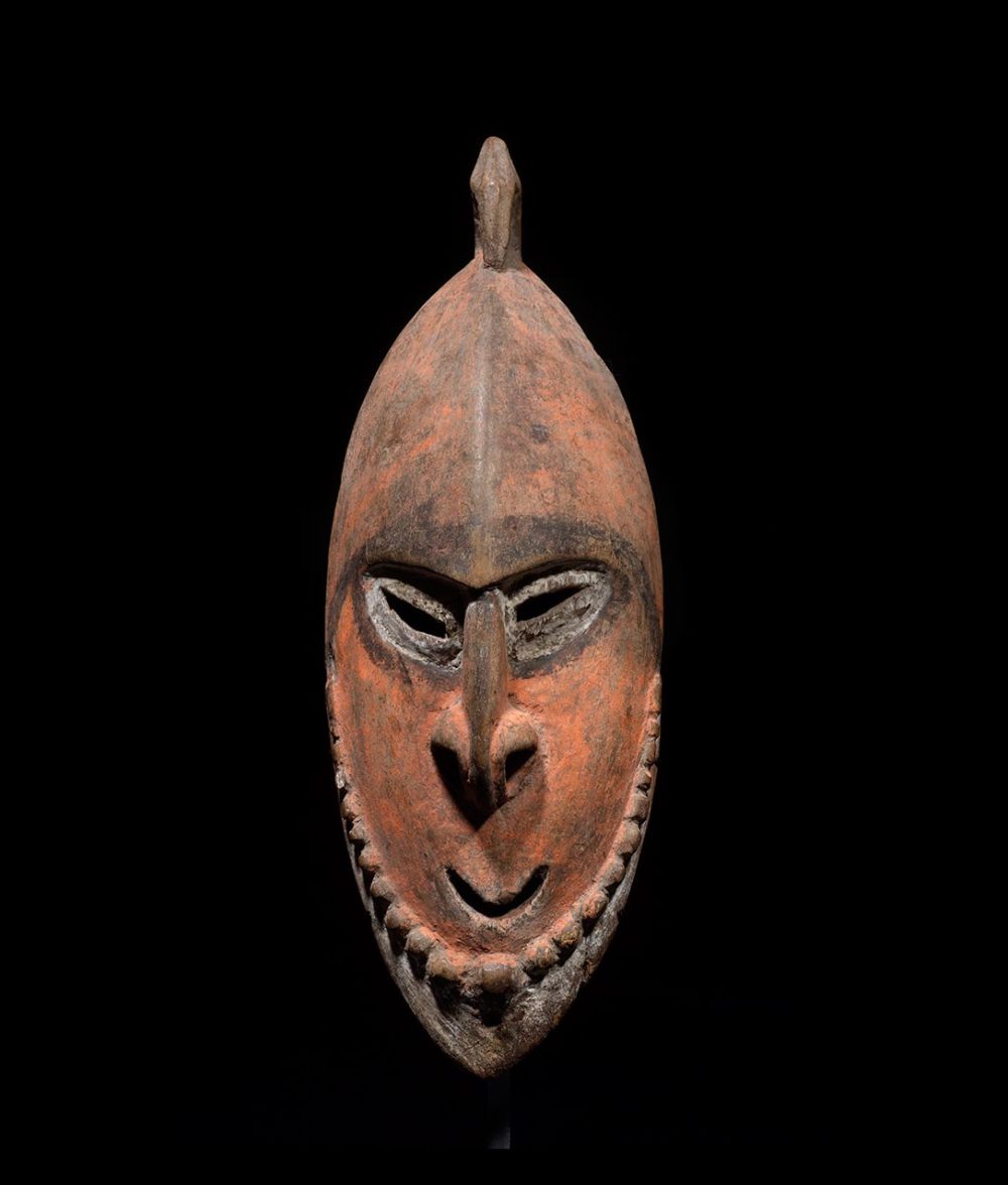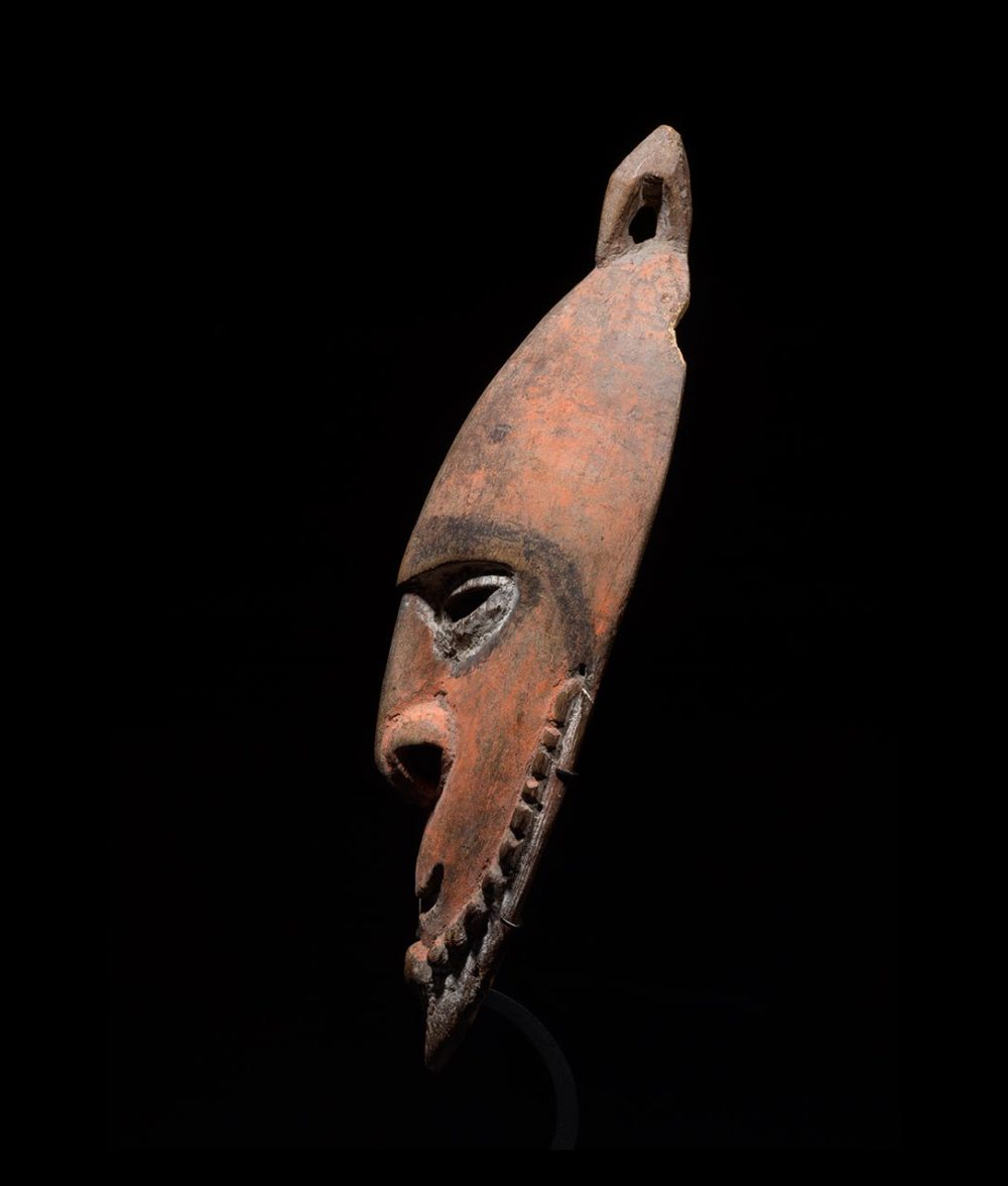 Masks of this type were used to represent important ancestors of the clan. They were presented to young initiates in important ceremonies in which the inductees were given the necessary knowledge needed to enter the adult world. The hornbill beak on the top of the mask was distinctive symbols related to ancestors, headhunting and warfare. This striking mask is still decorated with most of its original natural pigments. The mask is nicely patinated and shows evidence of many years of use and age.