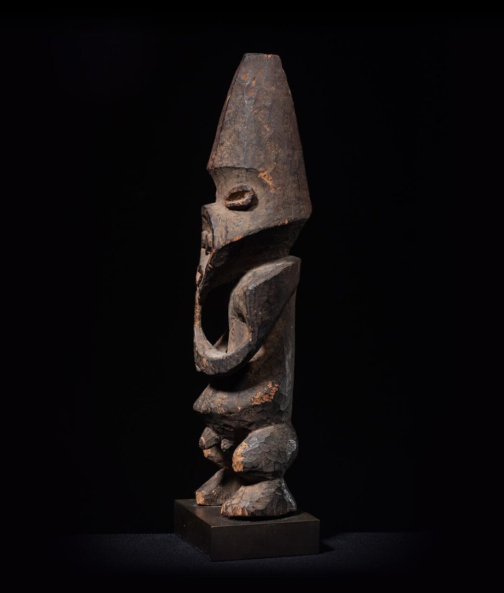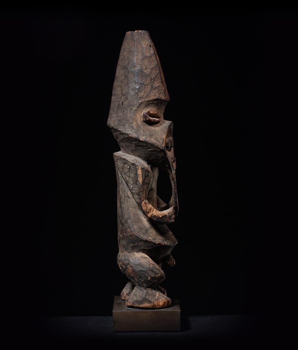 Tribal art often reflects the cultural beliefs and practices of a specific community. The concept of transformation in tribal art is a manifestation of the belief that objects or beings can change or shift form to reveal different aspects of themselves. In the case of this Tadep figure, the presence of two distinct faces that can be perceived when viewed frontally and from profile is an example of transformation in tribal art.