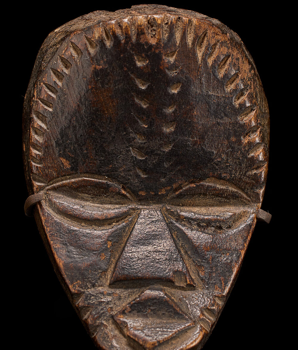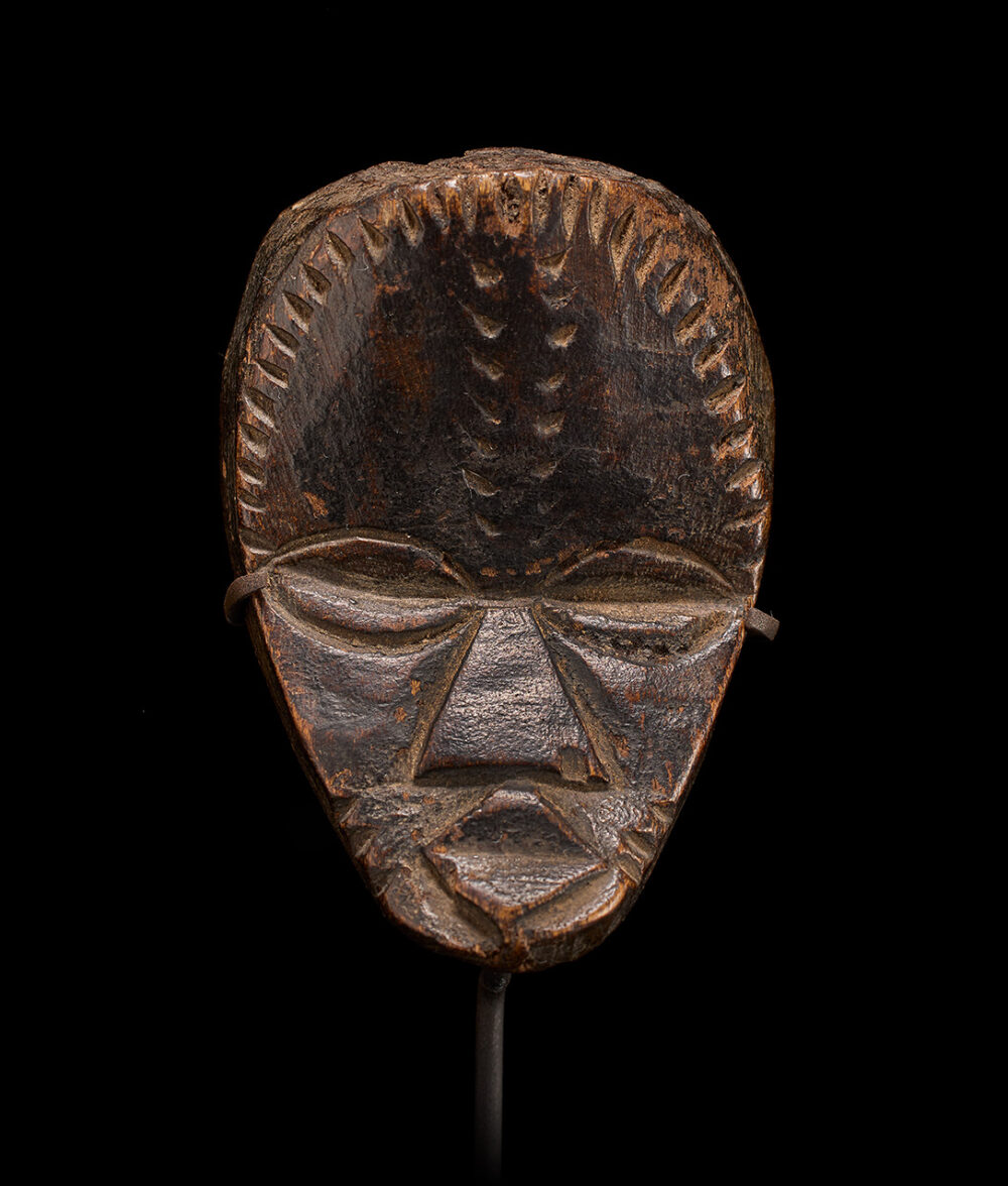 Passport masks are often small renditions of larger masks that can harness power from an ancestor spirit. These smaller masks can fit into the palm of a hand and are carried on the person in order for the carrier to benefit from its protective powers.