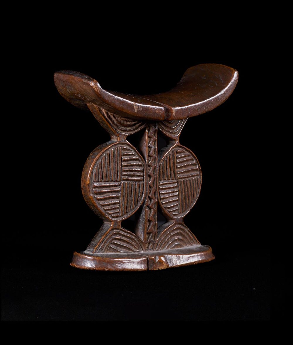 Some interpretations suggest that the headrests may symbolize female cicatrization marks, with “nyora” referring to both phenomena. It’s noteworthy that these nyora patterns consistently appear on Shona headrests across regions, possibly signifying the transition to womanhood and marriage eligibility. Mature men primarily used these headrests, making them symbolic of the importance of women and wives in Shona society. These headrests serve as multifaceted symbols, reflecting various aspects of Shona life and culture.