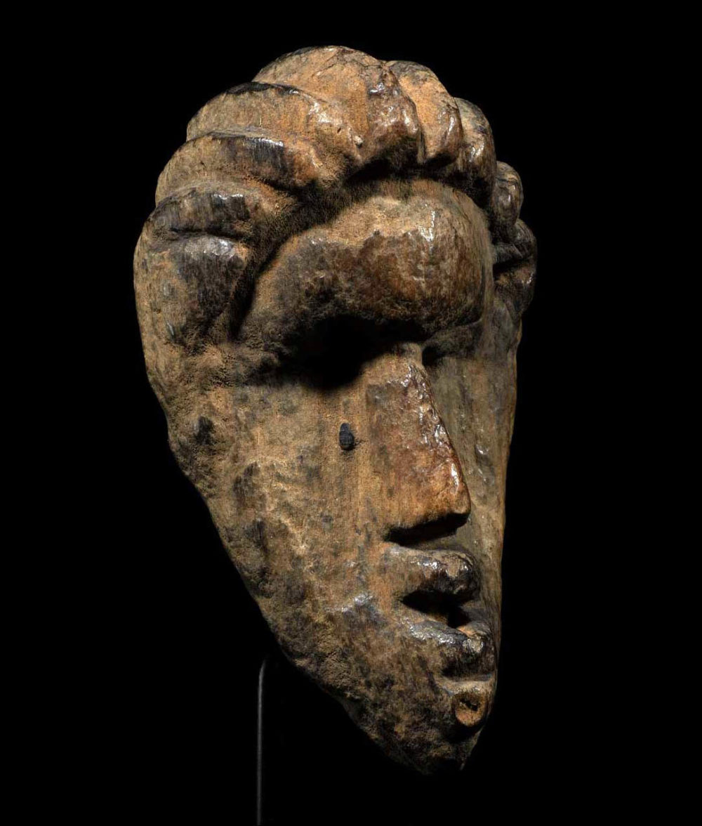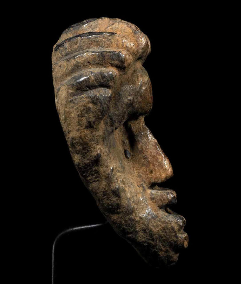 Passport masks are often small renditions of larger masks that can harness power from an ancestor spirit. These smaller masks can fit into the palm of a hand and are carried on the person in order for the carrier to benefit from its protective powers.