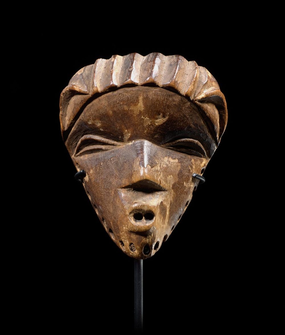 Passport masks are often small renditions of larger masks that can harness power from an ancestor spirit. These small masks can fit into the palm of a hand and are carried on the person in order for the carrier to benefit from its protective powers. This particular example is very well carved; its open protruding mouth imbues power. The patina is dark and varied. A very fine example, that is in excellent condition.