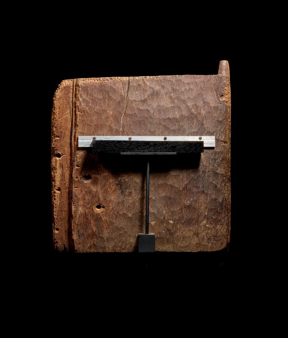The Toraja bury their dead in cliff caves that are sealed with wooden doors carved with ancestor figures or the head of a buffalo, a symbol of fertility and wealth. Similar doors are also used to close off granaries. Such doors were placed at the entrance to crypts carved in limestone cliffs. They served as doors to crypts which held the remains of members of the aristocracy. Doors with images of water buffalo are said to have been used especially for priests. The buffalo is an important animal in Toradja culture where it serves as an important store of wealth and a symbol of prestige. The present example is carved in high relief, the central water buffalo head is surrounded by classical Toradjan scrolling and linear patterns. The buffalo is an auspicious motif in Toraja culture, and the staff between the horns is a symbol of defense or protection for the dwelling. Made of extremely dense and hard wood, it has an almost “fossilized” appearance.