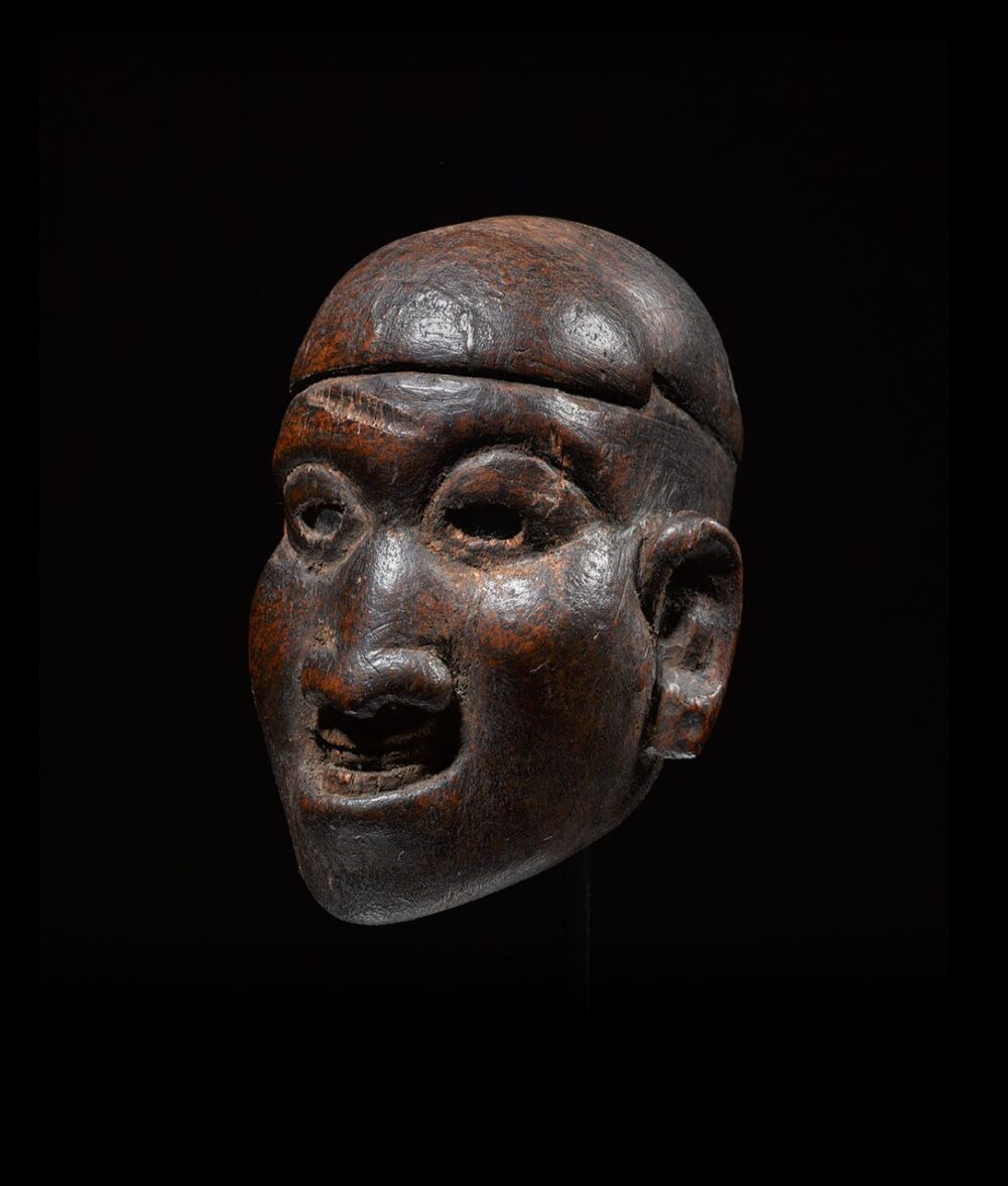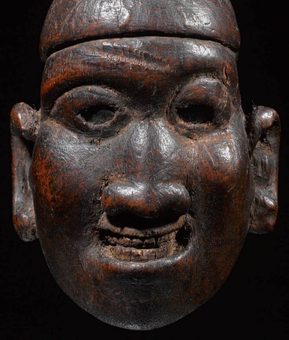 Head Hunting was a vital part of the Naga cultural system. The taking of heads, ensured the vital force of the village through captured energy from an enemy’s severed head. These rare wooden heads were only worn by a warrior who had taken a head; indeed, the realism of these pendants is reminiscent of a death mask.