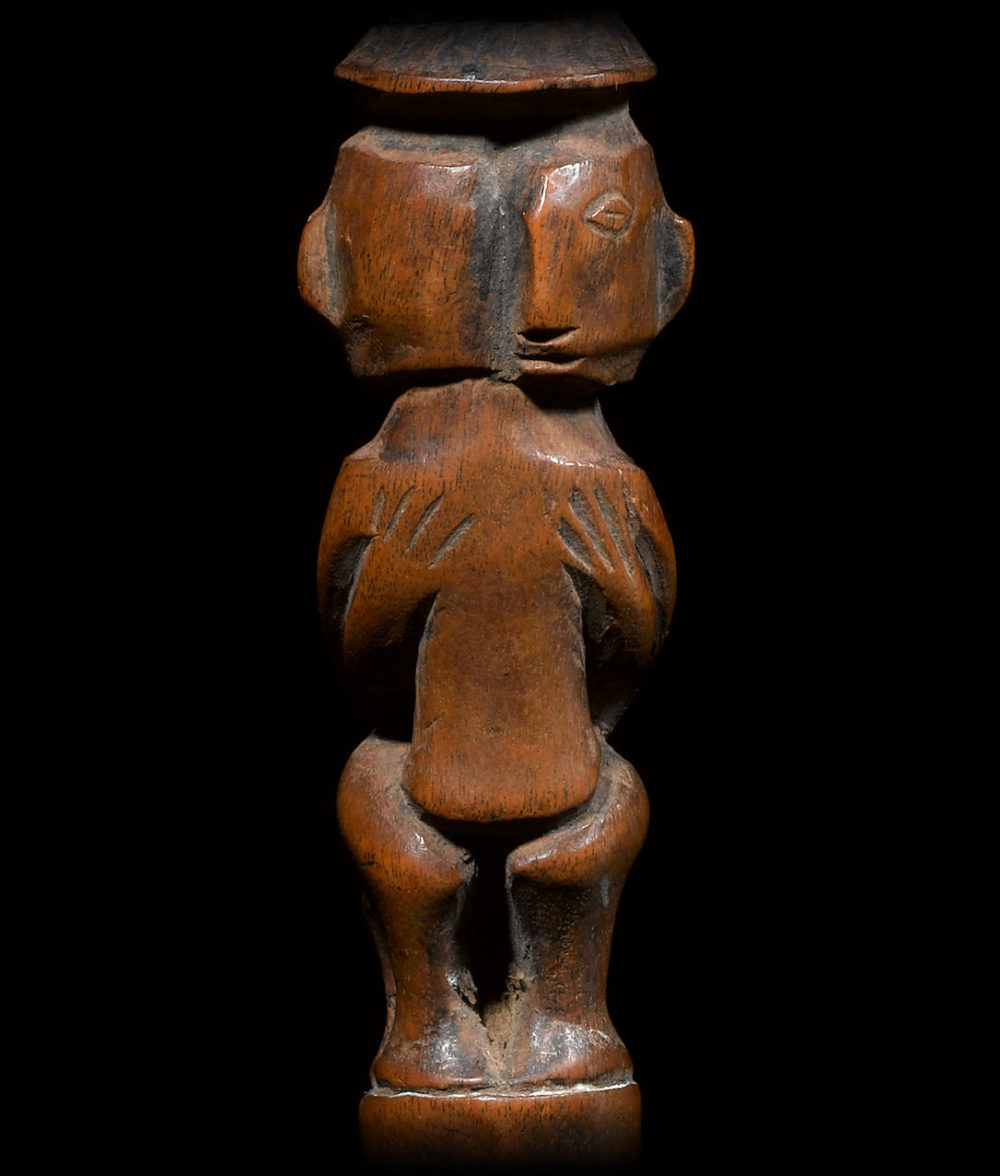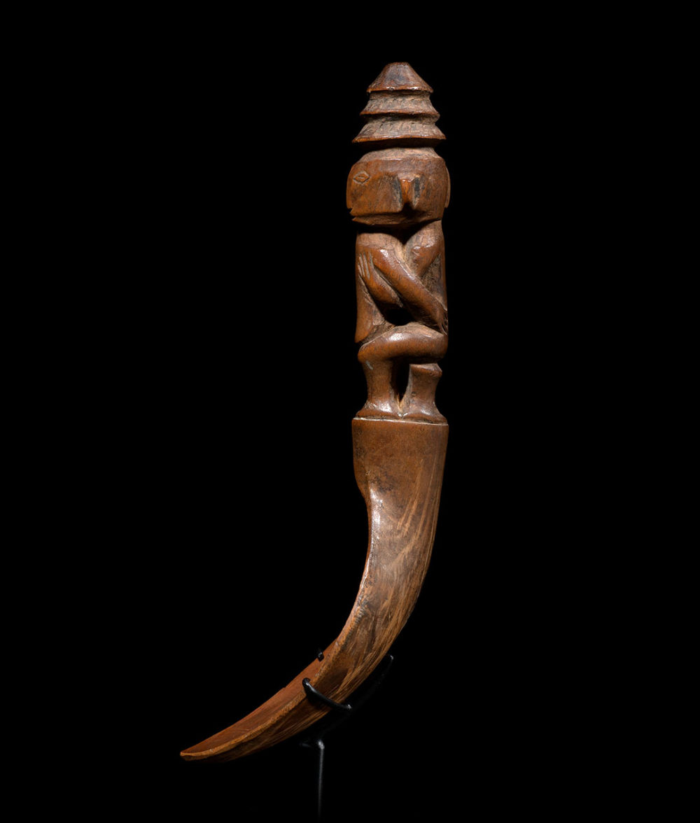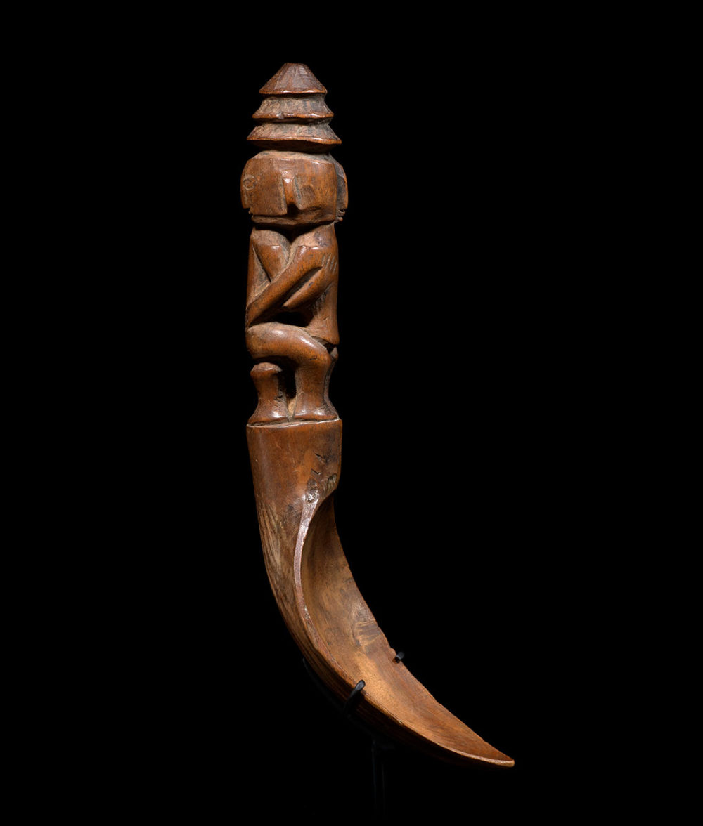 Provenance: Important American collection. The Ifugao people are renowned for their rice deities figures (bulul) as well as their finely carved bowls and spoons. Figurative spoons have been used by the Ifuago to serve food and wine. They usually represent one solitary figure or embraced couples. This ingeniously carved couple, the bold curves and the smooth surface of the spoon gives it a feeling of force and tenderness altogether.