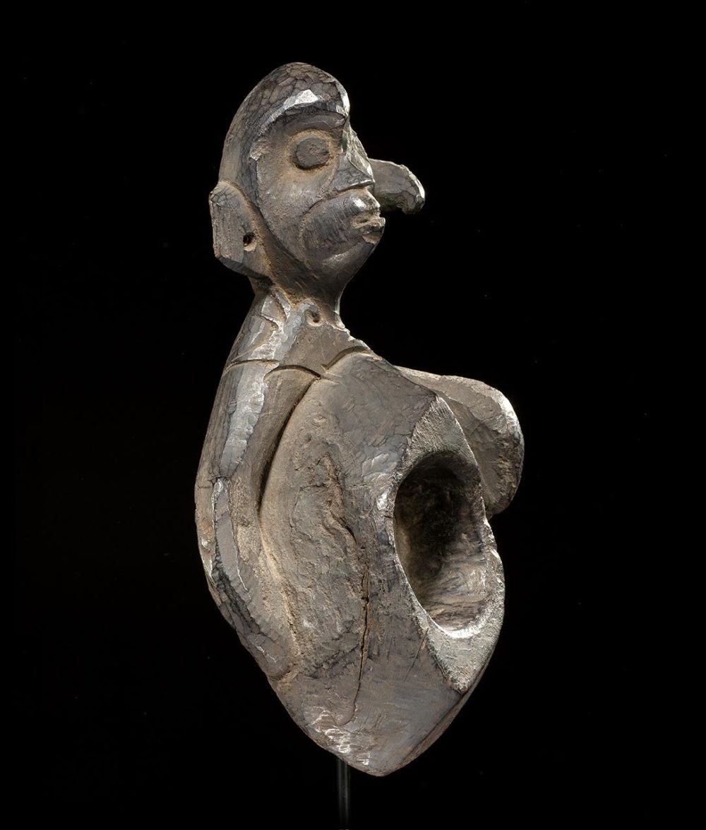 With its expressive face and wild positioning of the arms this zoomorphic mortar is a dynamic work of art. The clawed hands are finely carved and the ‘bowl’ of the mortar is deep showing excellent signs of use. The patina overall is brilliant from decades of storage and use. In excellent condition.