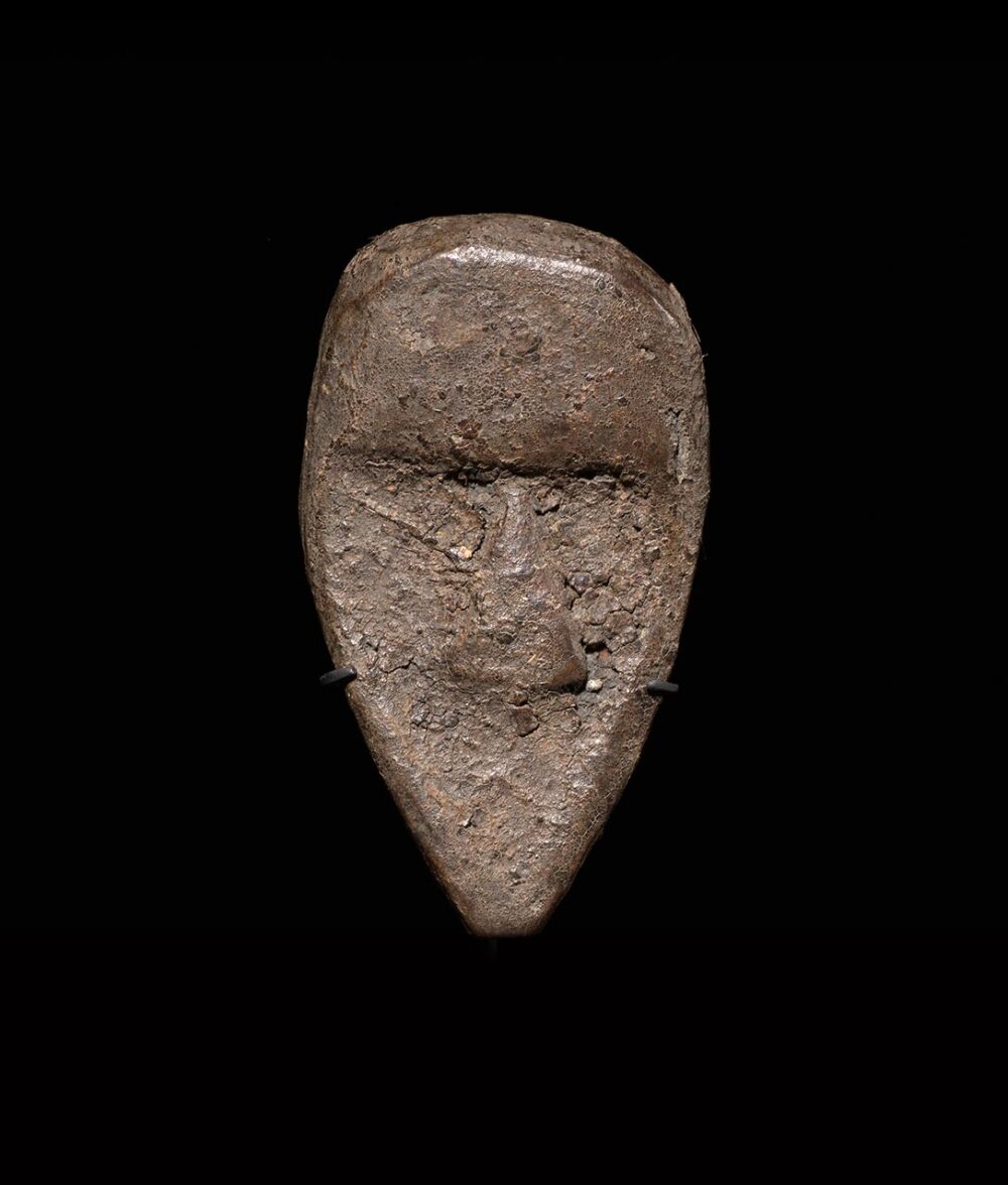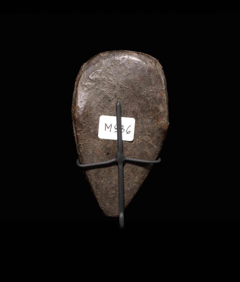 Small maskettes such as this one are called ma go masks. They are carried for personal protection and also used to represent the clan they belong to when they travel outside their homeland. Some examples; such as this one have deep encrusted surfaces from libations; and sometimes charges packed inside the back of the masks for more power. The features on the face are barely visible due to the surface patina; this creates an enigmatic and very powerful presence. This is a very old and fine example.