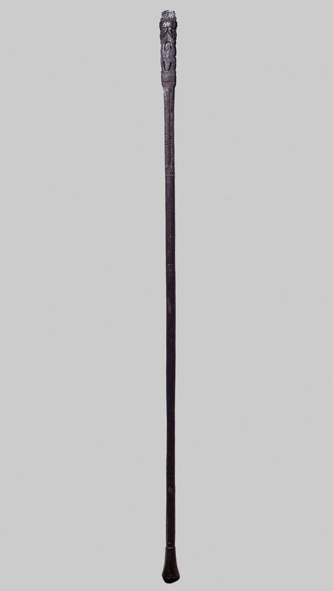 In Massim culture, the staff is used by sorcerers to channel their supernatural powers. The human figure on top of the staff is thought to represent the sorcerer and his or her spirit helper, who work together to perform magical feats. The curvilinear scrolling designs that adorn the staff are thought to represent the flow of energy that the sorcerer manipulates through his or her use of the staff.