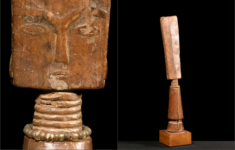 A classic Fante doll of abstract form with elongated head and diminutive face. Sometimes these dolls are used like western dolls as 'toys' but are mostly used as fertility dolls by young girls; this example of early vintage was given to a young female to promote fertility for her future. The doll is rubbed and handled daily for this purpose and the surface wear, especially the worn down breasts speak to this said handling. There is a stabilized age crack on the back of the figure but this does not detract at all from the beauty or value.