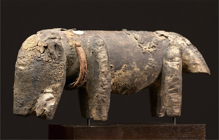dog is a twisted iron necklace. There is a very old break to the dog’s
