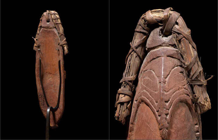 Canoe masks were attached to a sago screen and placed in the prow of war canoes. The masks were intended to intimidate and terrify potential victims of the war party.