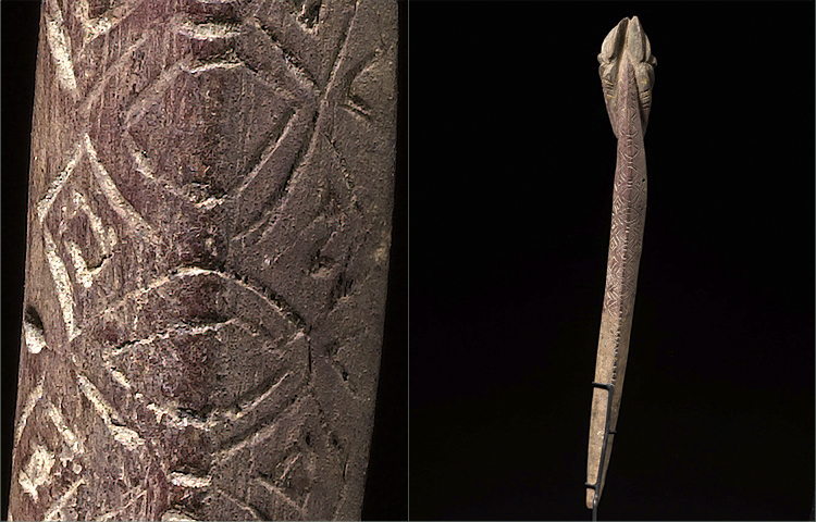 This rare stone carved staff is used by young boys during initiation.